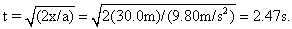 | v = at = (9.80 m/s2)(2.47 s) = 24.2 m/s. |  |