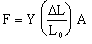 and cross-sectional area A is subjected to a force, F, which pulls (or pushes) along the length of the object (i.e., perpendicular to A). The object will stretch (or compress) by an amount DL as shown in the figure.