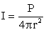 The unit of sound intensity is W/m2. If the source emits sound uniformly in all directions, the radiated power P passes through the spherical surface area A = 4pr2, where r is the distance to the sound source. The intensity is: