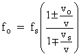 In the numerator of the equation, the plus sign applies when the observer moves toward the source, and the minus sign applies when the observer moves away from the source. In the denominator, the minus sign is used when the source moves toward the observer, and the plus sign is used when the source moves away from the observer. The symbols v, vo, and vs