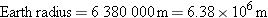 The factor of ten raised to the sixth power is ten multiplied by itself six times, or one million, so the earth’s radius is 6.38 million meters. Alternatively, the factor of ten raised to the sixth power indicates that the decimal point in the term 6.38 is to be moved six places to the right to obtain the radius as a number without powers of ten.