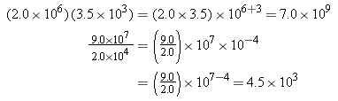 Calculations that involve the multiplication and division of powers of ten are carried out as in the following examples: