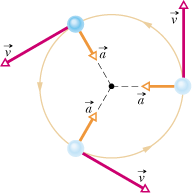 |  | |  | | FIGURE 4-19 | Velocity and acceleration vectors for uniform circular motion.