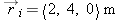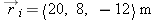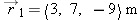 At time ti = 12.18 s after 1:30 PM a ball's position vector is  . The ball's velocity at that moment is  . At time tf = 12.21 s after 1:30 PM, where is the ball, assuming that its velocity hardly changes during this short time interval?
