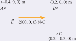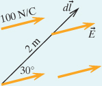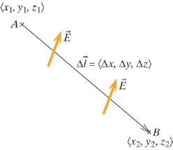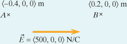 Figure 17.7 shows two locations, A and B, in a region of uniform electric field. For a path starting at A and going to B, calculate the following quantities: