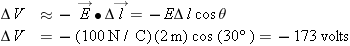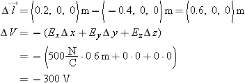 Note that since ΔV = −(ExΔx + EyΔy + EzΔz), and the units of ΔV are volts, then the units of electric field must be volts per meter. This is in fact equivalent to newtons per coulomb, and