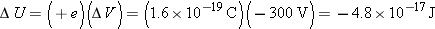 −19J. If an electron moves through a potential difference of one volt, there is a change in the electric potential energy whose