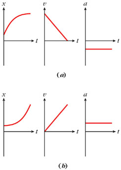 Recall that the v versus t graphs (in Figure 2-12) for the carts in Figure 2-13 are also straight lines, so the carts' accelerations are also constant. In short, there are a variety of situations that we can treat as having constant or roughly constant acceleration.