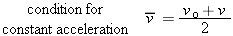 Average Velocity Suppose an object accelerates uniformly from a velocity vo at t = 0 to a velocity v at some later instant t. The average velocity over this interval will then be midway between the values of vo and v. In other words, it is the numerical average of these two values: