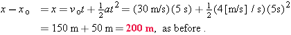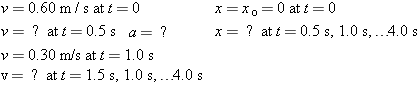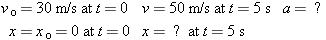 Solution Restating the problem. Although the question asks for a distance traveled during a time interval, it is often convenient to assume that the object in question is starting out at x = 0 and t = 0. (This is just a matter of deciding where to put your origin and when to start your stopwatch.) With this assumption, Δx = x − xo = x − 0 = x and Δt = t − 0 = t. The question then becomes x = ? when t = 5 s. What we know/what we don't.