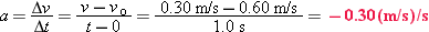 Graphing the Results. The resulting graphs are summarized in Figure 2-19 b–d. To obtain the a versus t graph, recall that a is uniform; its value is −0.30 (m/s)/s at every value of t.